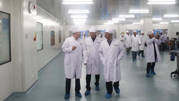 調(diào)研組一行參觀了公司綜合制劑二車間,公司總經(jīng)理席桂才介紹了企業(yè)的基本情況。在產(chǎn)品展示區(qū),調(diào)研組詢問了公司主打產(chǎn)品功效、新產(chǎn)品研發(fā)及產(chǎn)品總體布局情況。在車間生產(chǎn)線,調(diào)研組了解了生產(chǎn)線操作流程及現(xiàn)代化設(shè)備功能。