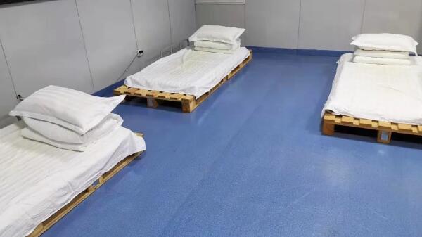 由于新冠病毒傳染性強(qiáng)、潛伏期長等特性,配送人員多次往返醫(yī)院等高危場所,接觸人員復(fù)雜,極易暴露,為節(jié)約時間,同時消除疫情擴(kuò)散的潛在隱患,值班人員把公司培訓(xùn)室改成臨時臥室,兩張木質(zhì)托盤一拼就成了他們的床,當(dāng)我們還沉睡在被窩里時,他們已經(jīng)在送貨的路上。